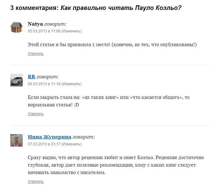 Книги с занимающим сюжетом — это «Алхимик», «На берегу Рио-Пьедра села я и заплакала», «Пятая гора», «Книга воина света», «Вероника решает умереть», «Дьявол и сеньорита Прим», «Одиннадцать минут», «Заир», «Ведьма из Портобелло», «Победитель остается один».